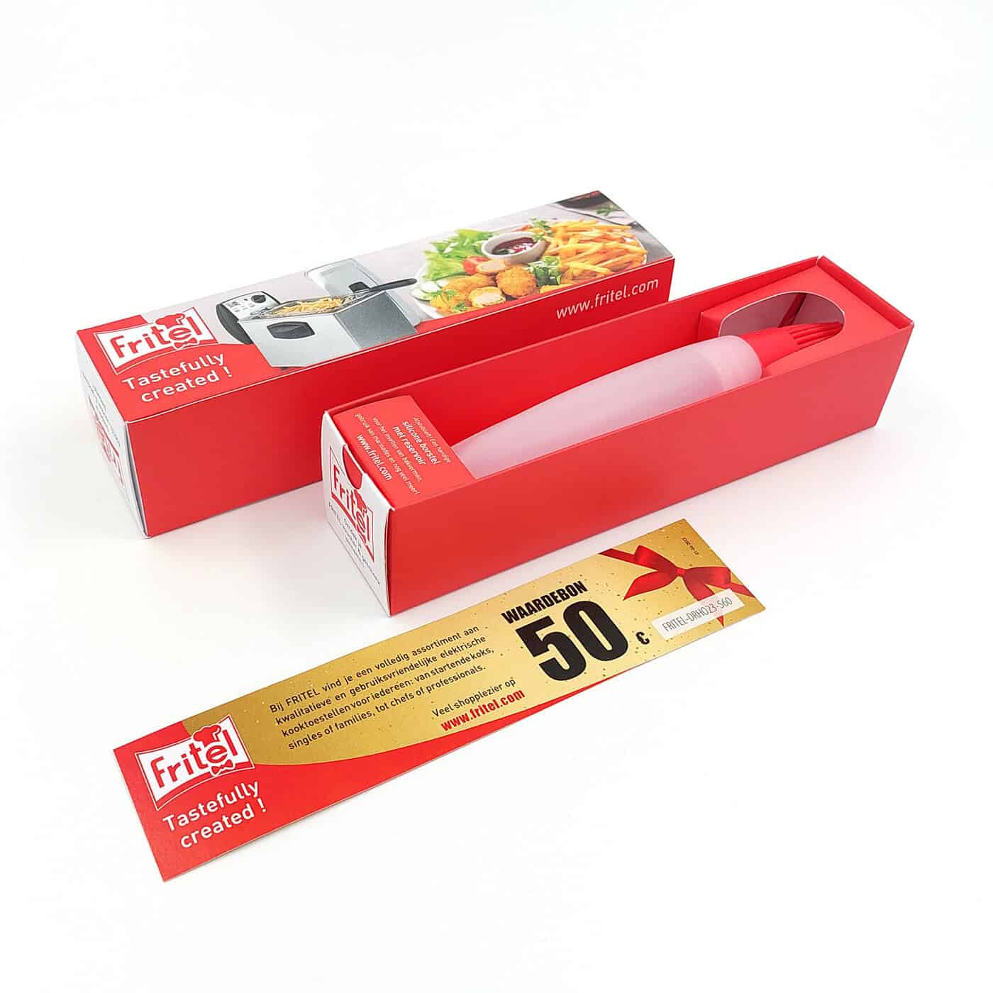 Ook na het beursbezoek wil je dat jouw bedrijf niet vergeten wordt. De nieuwste stalen in een leuke verpakking, een aantrekkelijke brochure of een klein bedankje kunnen het verschil maken. Bijvoorbeeld Fritel vult een schuifdoosje met een siliconen borsteltje en voegt een voucher toe. Compact en bruikbaar!
